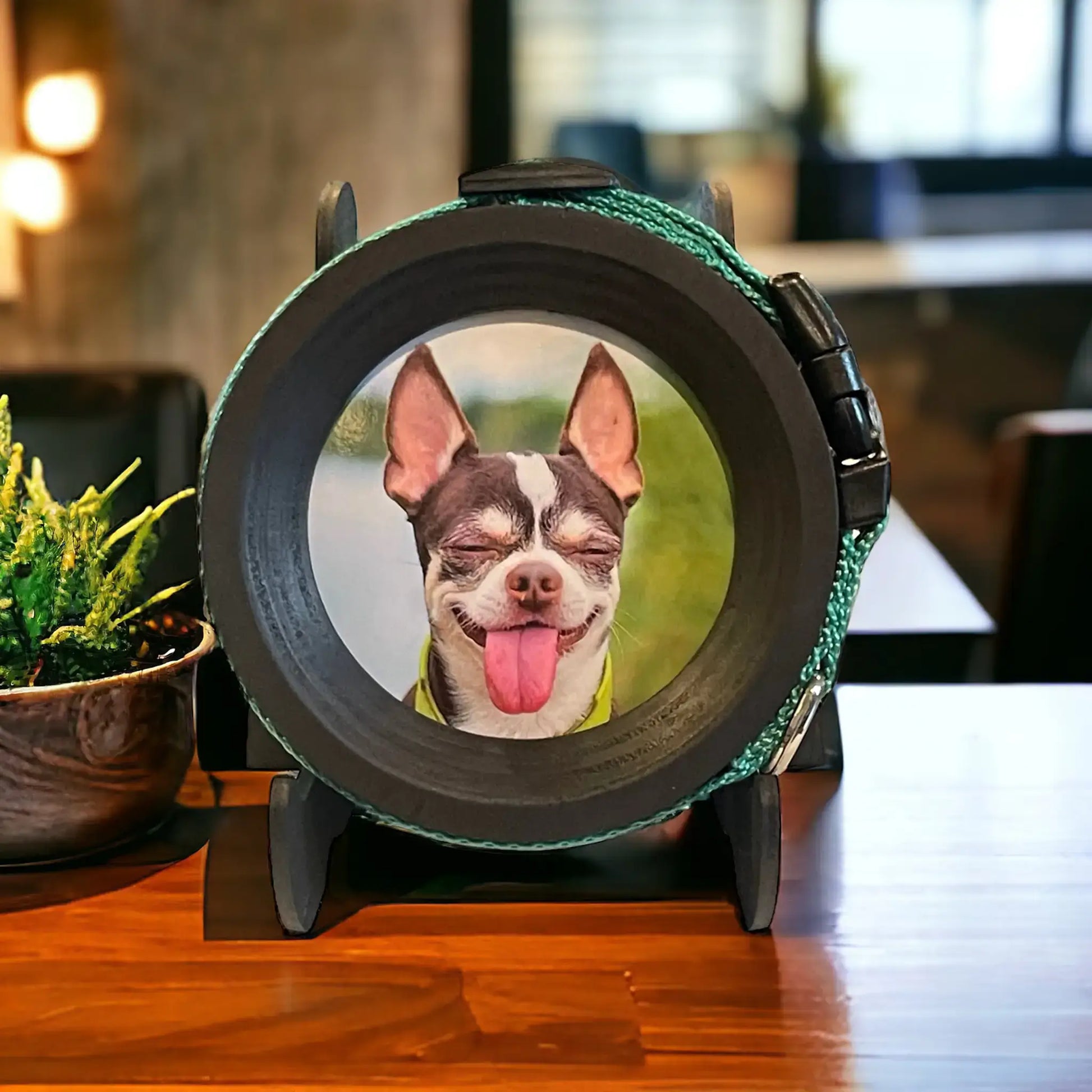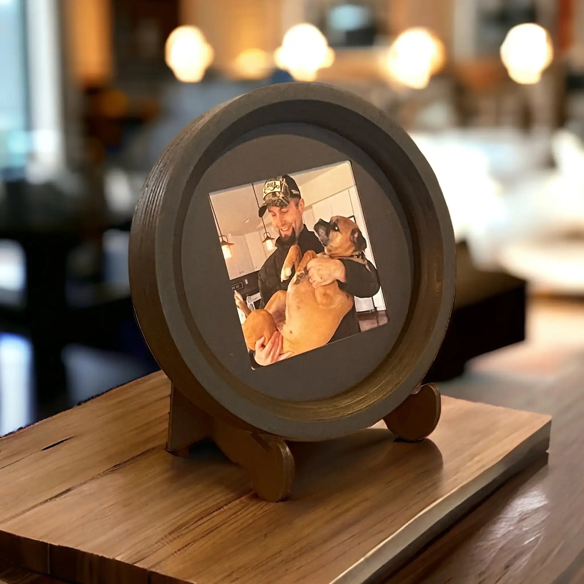 Our custom-engineered small black wooden display stand is the perfect complement for your Halo pet memorial picture frame or keepsake. Crafted for style and durability, it provides a stable base to showcase your beloved pet's memories.